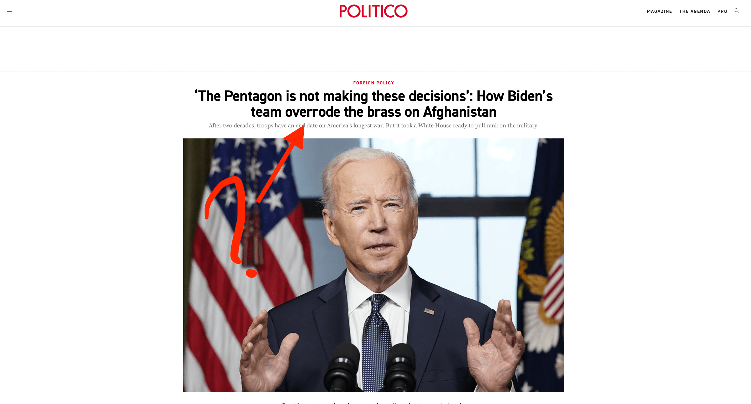 Politico relays outrage that the president ‘overrode’ his generals on Afghanistan
