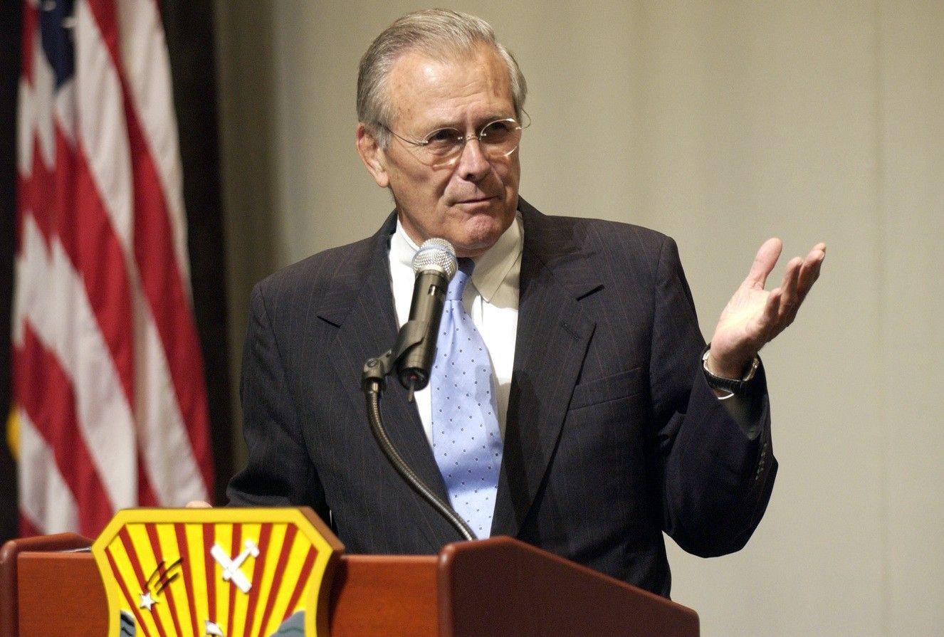 Known for his swagger and jingoistic approach to the job, the former Secretary of Defense later became a symbol of Iraq War failure.